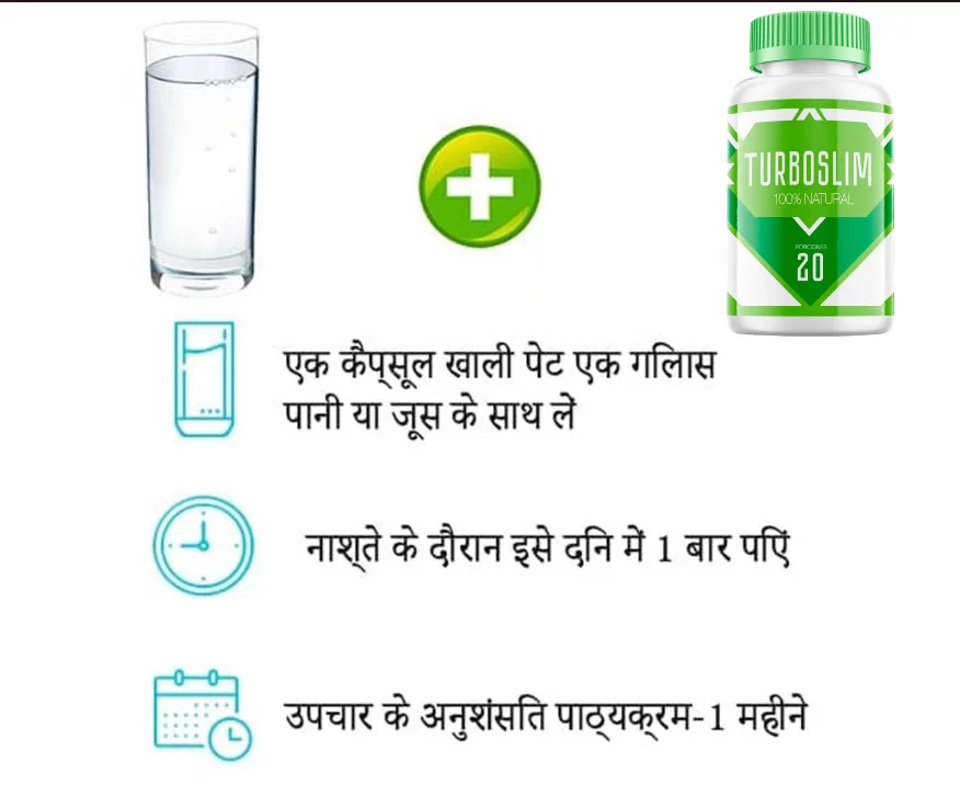 दीपक चोपड़ा: Turbo slim एक नेचुरल तत्व एवं मिनरल्स का मिश्रण है जो की एक प्रभावशाली परिणाम देता है ज्यादा वजन घटाने मे। यह तत्व एंडोक्राइन सिस्टम पर काम करते है और मेटाबोलिज्म को 7-10 गुना बढ़ाते है और शरीर का फालतू फैट (चर्बी) हटाते है बिना किसी नुकसान के. यह प्रोडक्ट एक दम नेचुरल है